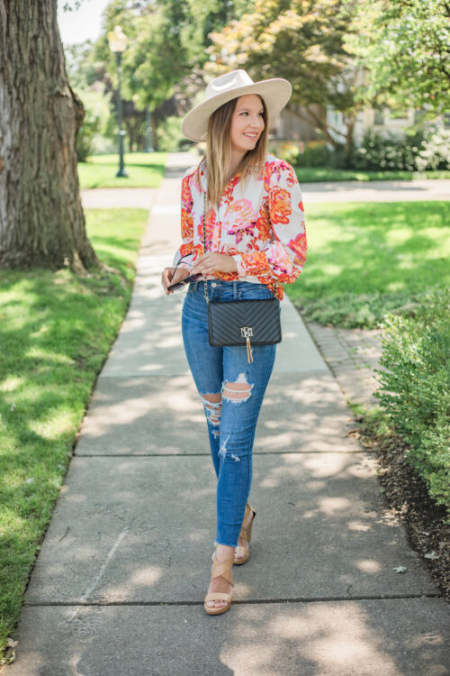 From Summer to Fall: How to Style a Colorful Floral Blouse for a Casual Look